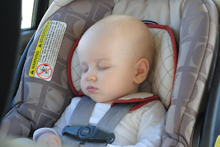 He was so excited to have people in the back seat. Papaw and I were happy to fulfill his every need for attention. Around 8 o clock I could tell he was getting sleepy, so we turned on his music (his baby mirror has a little music player attached to it. It is amazing!) and marveled over his utter cuteness while sleeping.